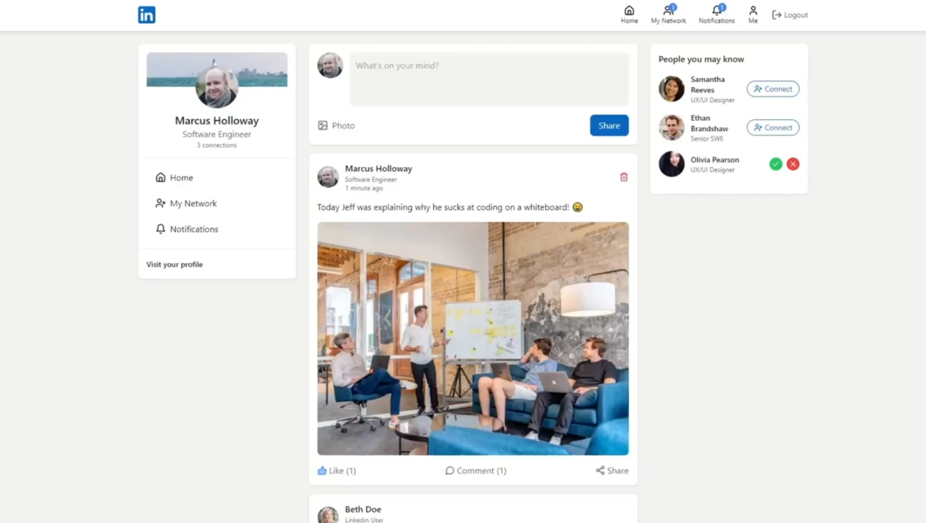 Check out the code here: LinkedIn Clone App