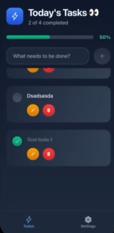 Supports full CRUD functionality, live updates, and a Settings page displaying overall task statistics.